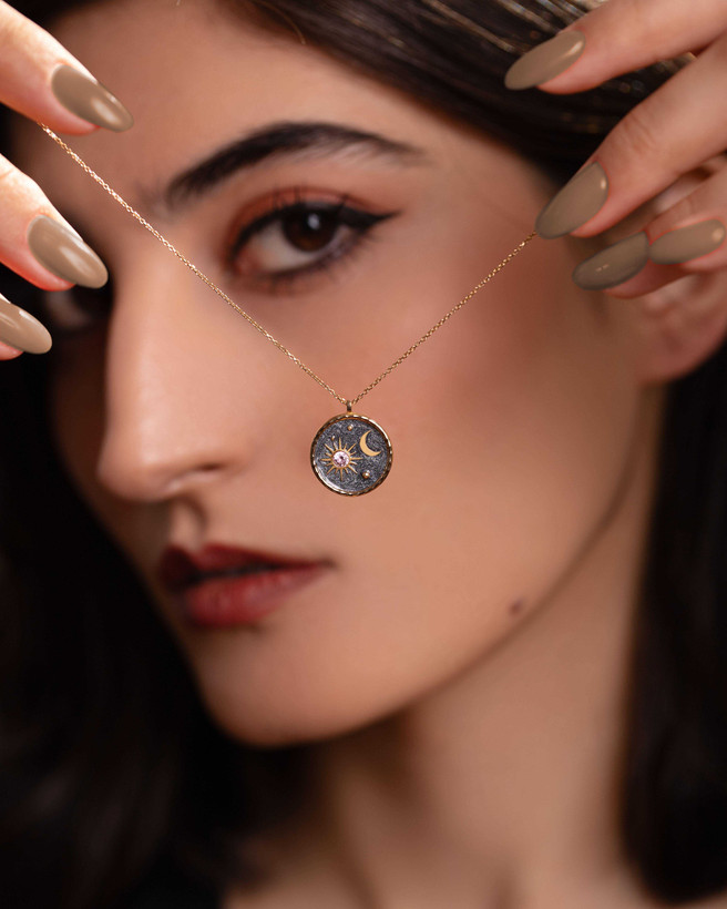 پلاک طلا دایره ای/ستاره،ماه، خورشید